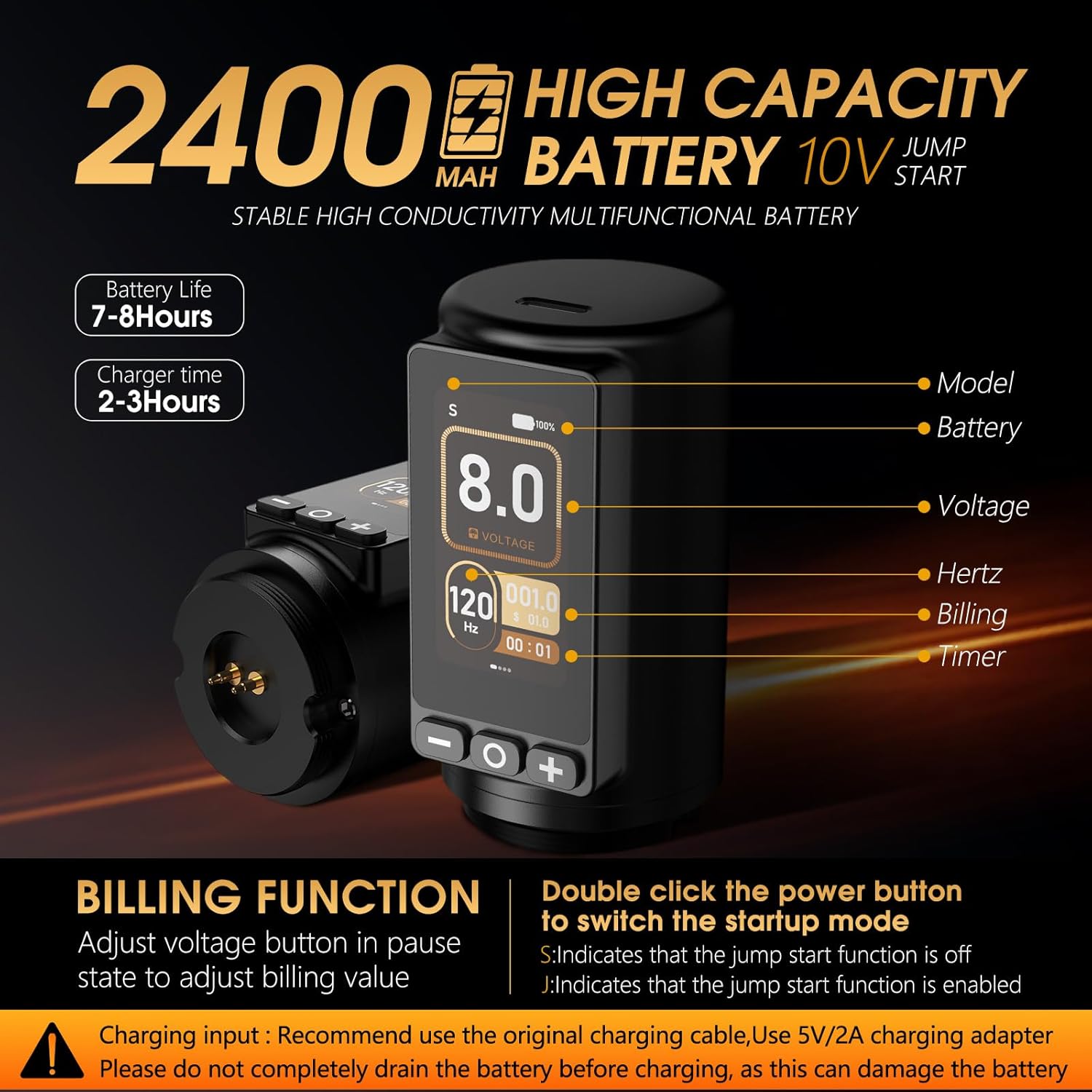 این مدل مجهز به باتری لیتیومی قوی با ظرفیت بالا است که امکان استفاده مداوم تا چندین ساعت را بدون نیاز به شارژ مجدد فراهم میسازد. همچنین با سیستم کارتریج یونیورسال، سازگاری کامل با انواع سوزنهای کارتریجی استاندارد را دارد.